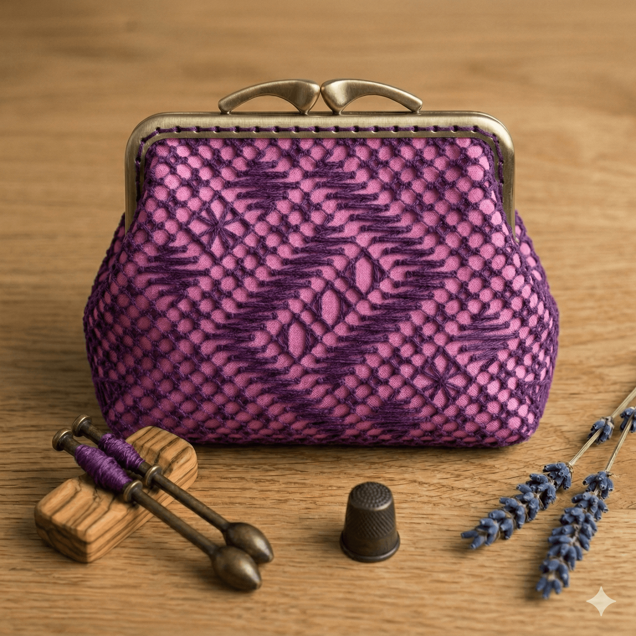 Mini bolsito torchon 03, en PDF descargable,  elaborado a mano con encaje de bolillos. Ligero, delicado y perfecto para regalos, eventos y amantes de la artesanía textil.